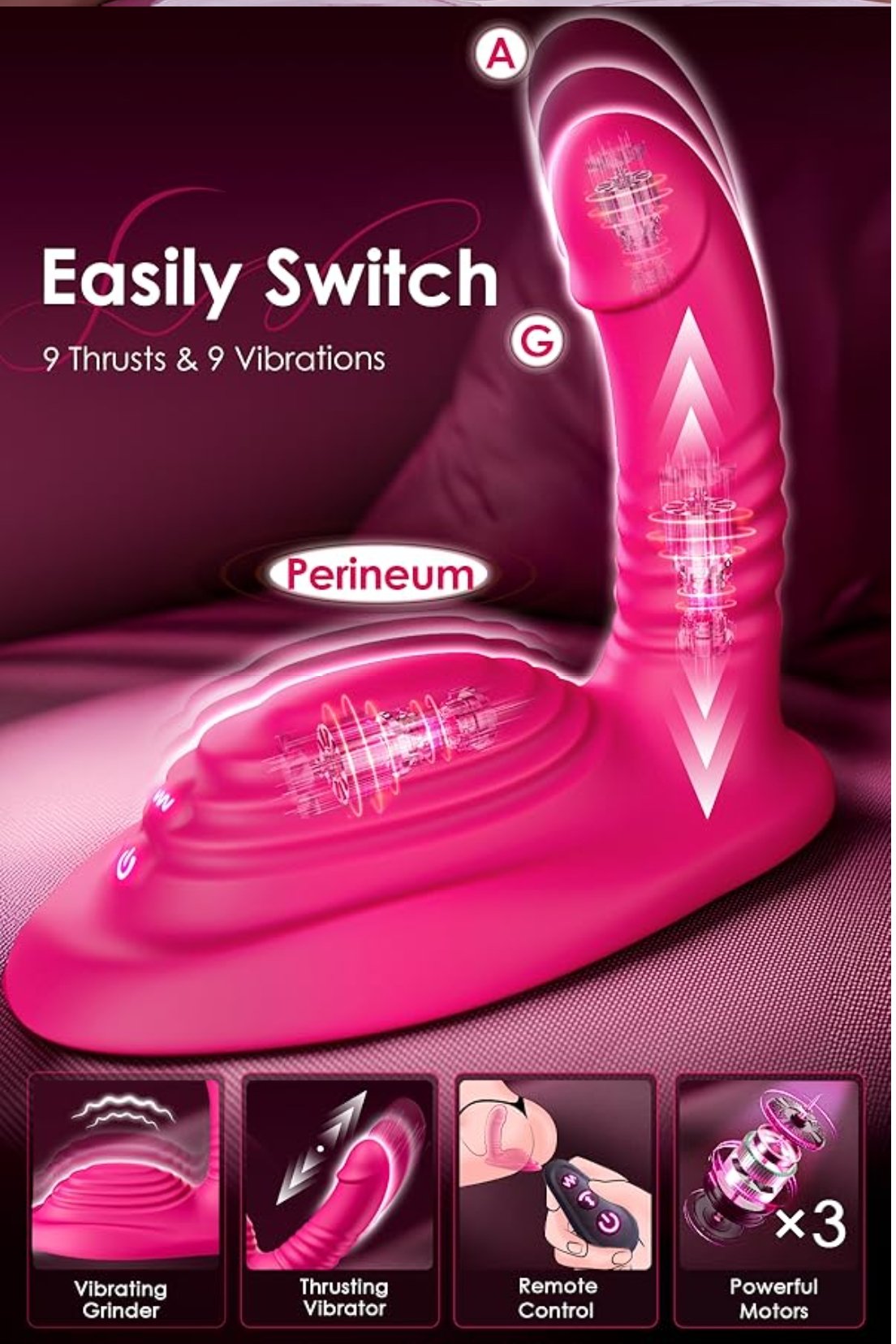 • 3 Powerful Motors – Offers 9 thrusting modes and 9 vibration modes that can work together.